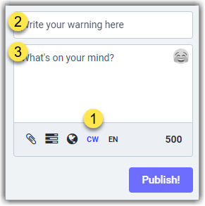 When Creating a new post, or replying, use the CW 1 to include the content warning.
