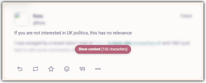 An example of how the post appears on the user's timeline. Note how the Commentary (1 above) is all that is shown, and a button appears to 'Show Content'