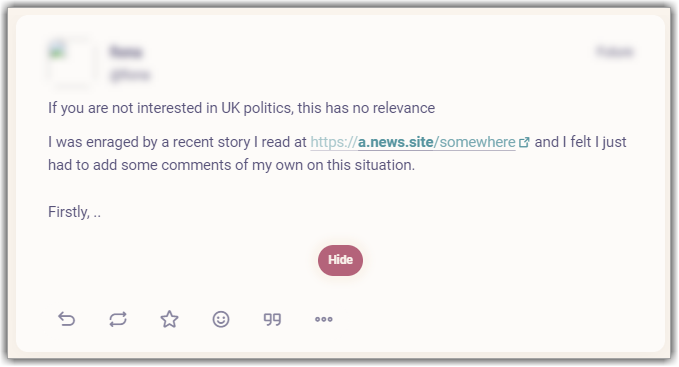 For example, you may wish to warn that a post contains some upsetting commentary, or images which some people may find offensive or irritating.