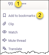 Using the three dots 1 at the bottom of a post, click and “Add to Bookmarks” 2. Done!